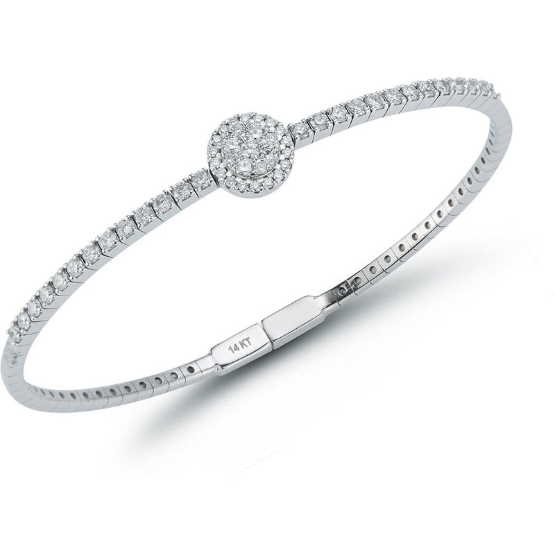 Sofer Jewelry - 14K White Gold Round Pave Center With Half Way Around Diamond Bangle with 1.09 Carats of Diamonds