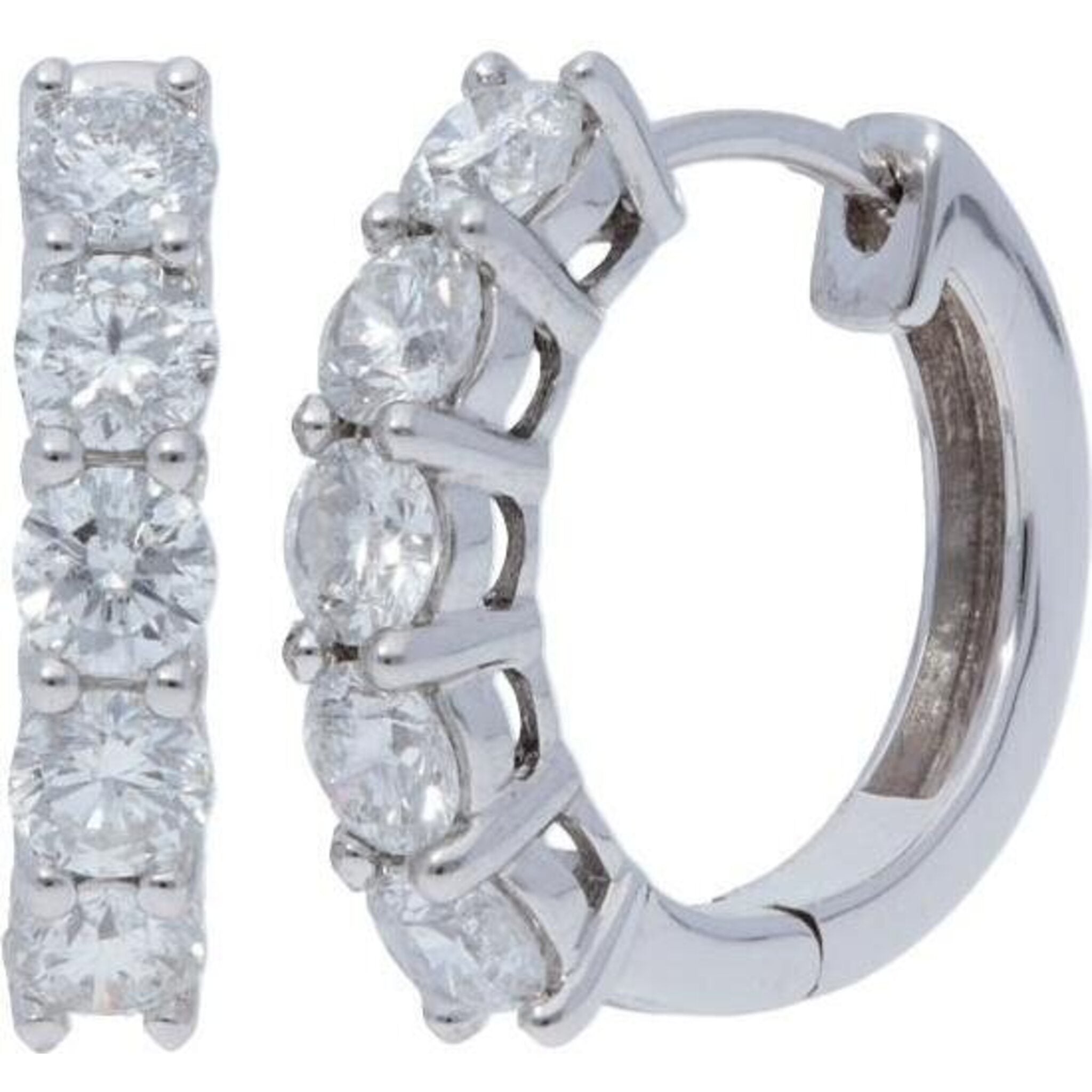Sofer Jewelry - 14K White Gold Shared Prong Diamond Hoop Earrings with 1.5 Carats of Diamonds