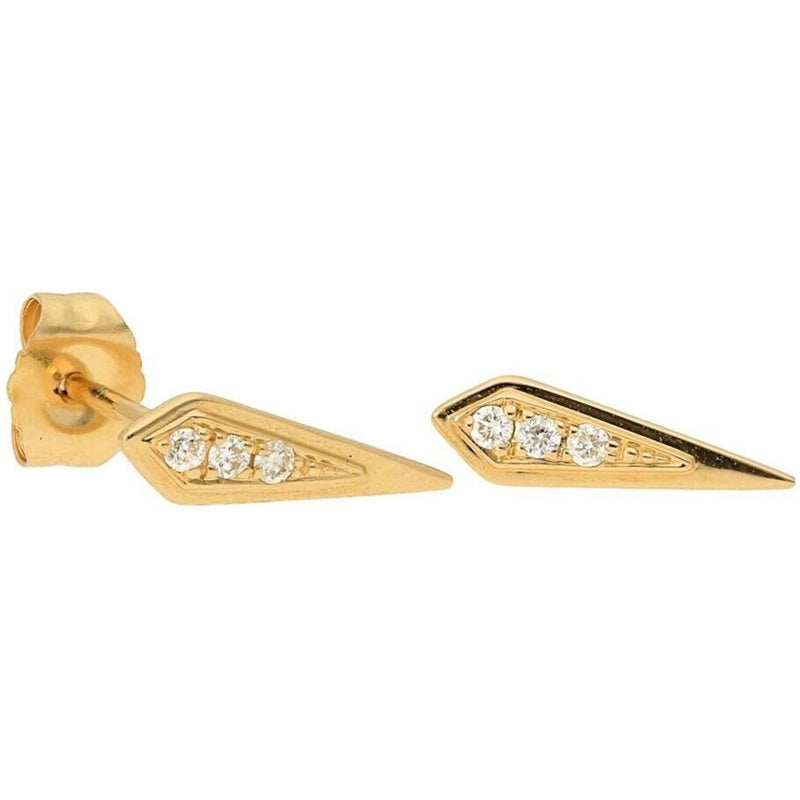 Celebrate the art of fine craftsmanship in a pair of Shield Diamond Stud Earrings in 14K Yellow Gold. Awaken your senses with the gleam of these exquisite earrings that effortlessly blend style and sophistication. Crafted with utmost precision and attention to detail, these earrings are a fusion of art and elegance, designed to elevate your style and captivate every onlooker.