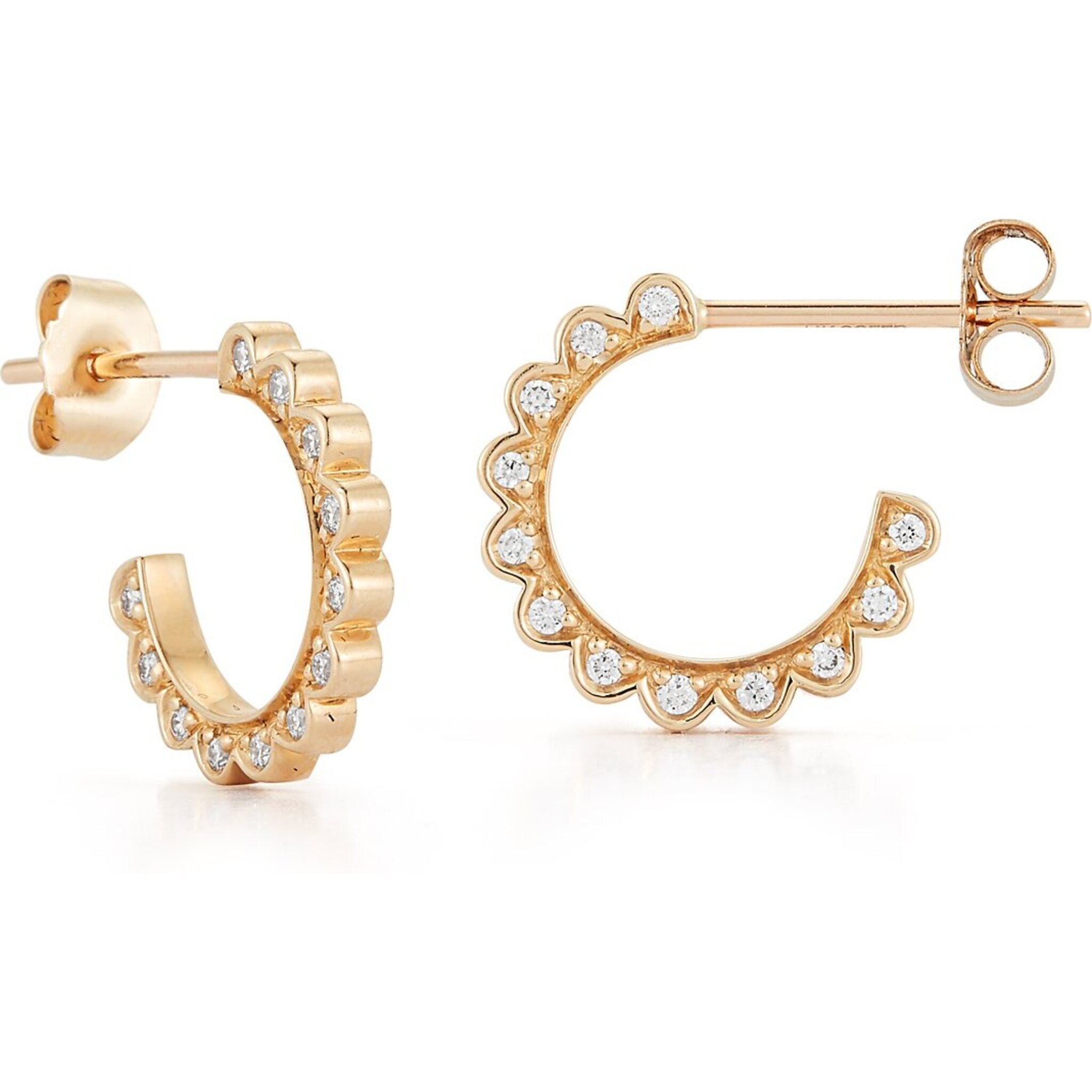 Crafted by the renowned Sofer Jewelry, these earrings feature a stunning array of 48 round diamonds, totaling 0.24 carats. The diamonds are delicately set in bezels, enhancing their brilliance and creating a mesmerizing play of light. The diamond color and clarity are of the highest quality, with a range of G-H and SI2, ensuring that every glance at these earrings evokes emotions of awe and admiration.