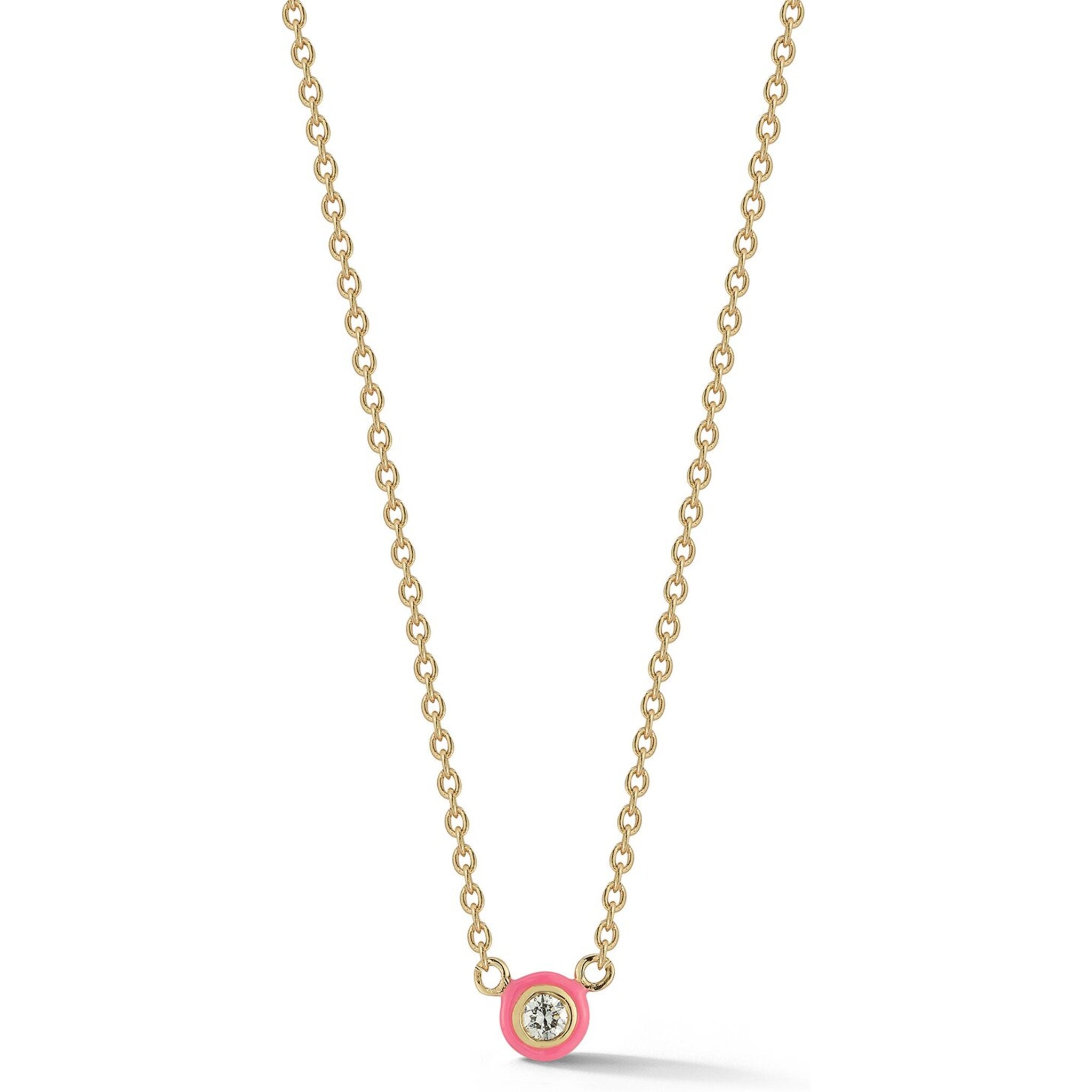 Sofer Jewelry - 14K Yellow Gold Single Diamond With Pink Enamel Bezel Necklace with 0.05 Carats of Diamonds