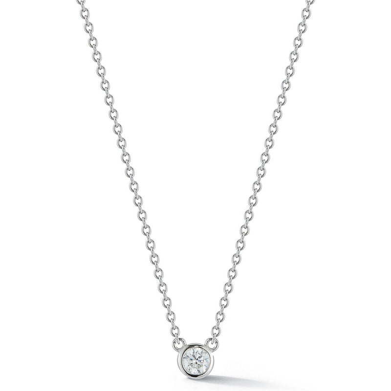Sofer Jewelry - 14K White Gold Single Polished Bezel Diamond Necklace with 0.15 Carats of Diamonds
