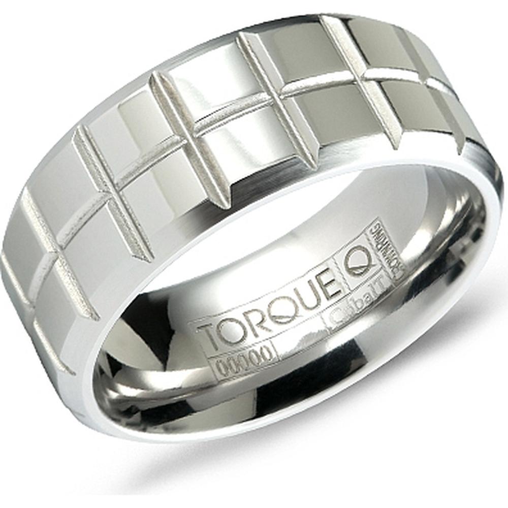 Torque Men's Wedding Band - Polished Grid Pattern with Grooved Detailing in Cobalt - 9mm Width from the Cobalt Collection